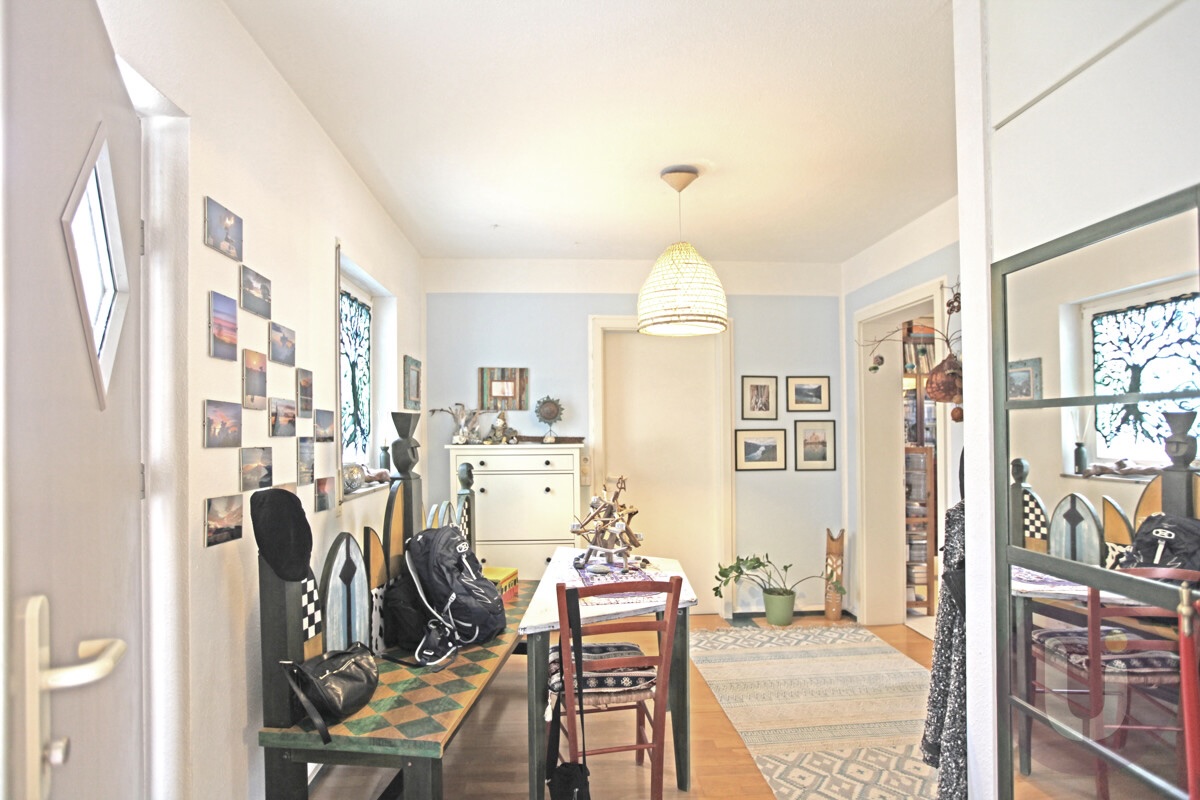 • Breiter Eingangsbereich mit Fenster (nutzbar als Garderobe/Büro/Arbeitsplatz/Sitzecke)