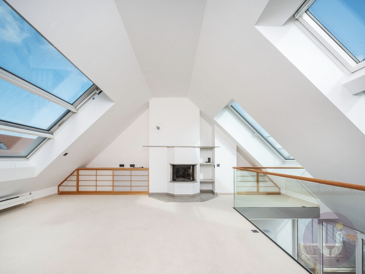 Die zweite Galerieebene, über eine weitere elegante Holztreppe zu erreichen, bietet spektakuläre Ausblicke durch die Panoramafenster und einen gemütlichen Kamin. Die außergewöhnlichen Fensterfronten beider Ebenen inszenieren jede Wetterstimmung und jeden Sonnenuntergang – ein Lichtspiel zu jeder Tageszeit.