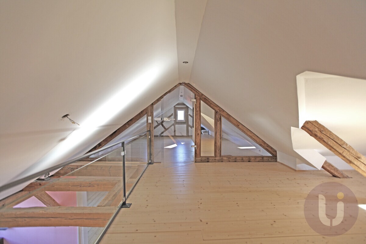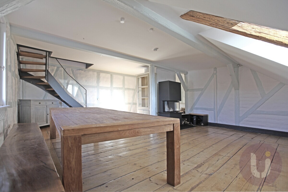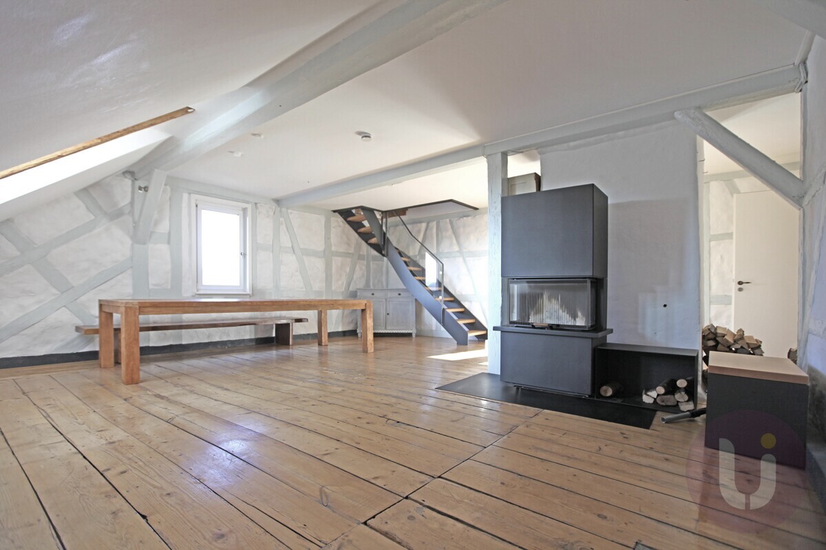 Willkommen in einem ganz besonderen Zuhause: Diese außergewöhnliche Dachgeschosswohnung befindet sich im denkmalgeschützten ”Hinteren Schlössle” – einem historischen Juwel aus dem Jahr 1879 im Herzen von Nürtingen-Oberensingen.