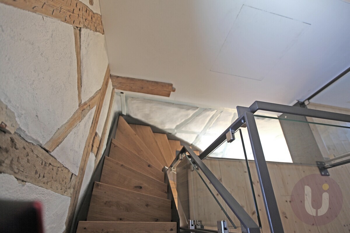 Die Wohnung wurde mit viel Liebe zum Detail ausgebaut und schafft eine einzigartige Symbiose aus Alt und Neu. Freigelegtes Fachwerk erzählt Geschichten aus über 140 Jahren, während das imposante Sichtgebälk dem Raum Charakter verleiht. Authentischer Dielenboden, stilvolle Wandvertäfelungen und originaler Stuck aus der Gründerzeit wurden behutsam restauriert und bilden einen faszinierenden Kontrast zu klaren Glasflächen, elegantem Metall und modernster Haustechnik. Jedes Detail wurde sorgfältig ausgewählt – das Ergebnis ist eine Wohnung mit Seele.