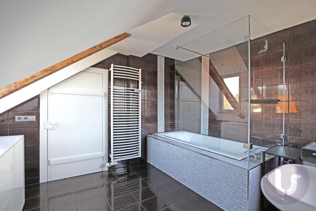 Raumgefühl, das begeistert Im ersten Dachgeschoss empfängt Sie eine hochwertig ausgestattete Küche, die sich zum lichtdurchfluteten Galeriebereich öffnet. Drei geräumige, abgeschlossene Zimmer bieten vielfältige Nutzungsmöglichkeiten für die ganze Familie. Das großzügige Wohn- und Esszimmer mit seinem beeindruckenden Raumgefühl lädt zum Verweilen ein.