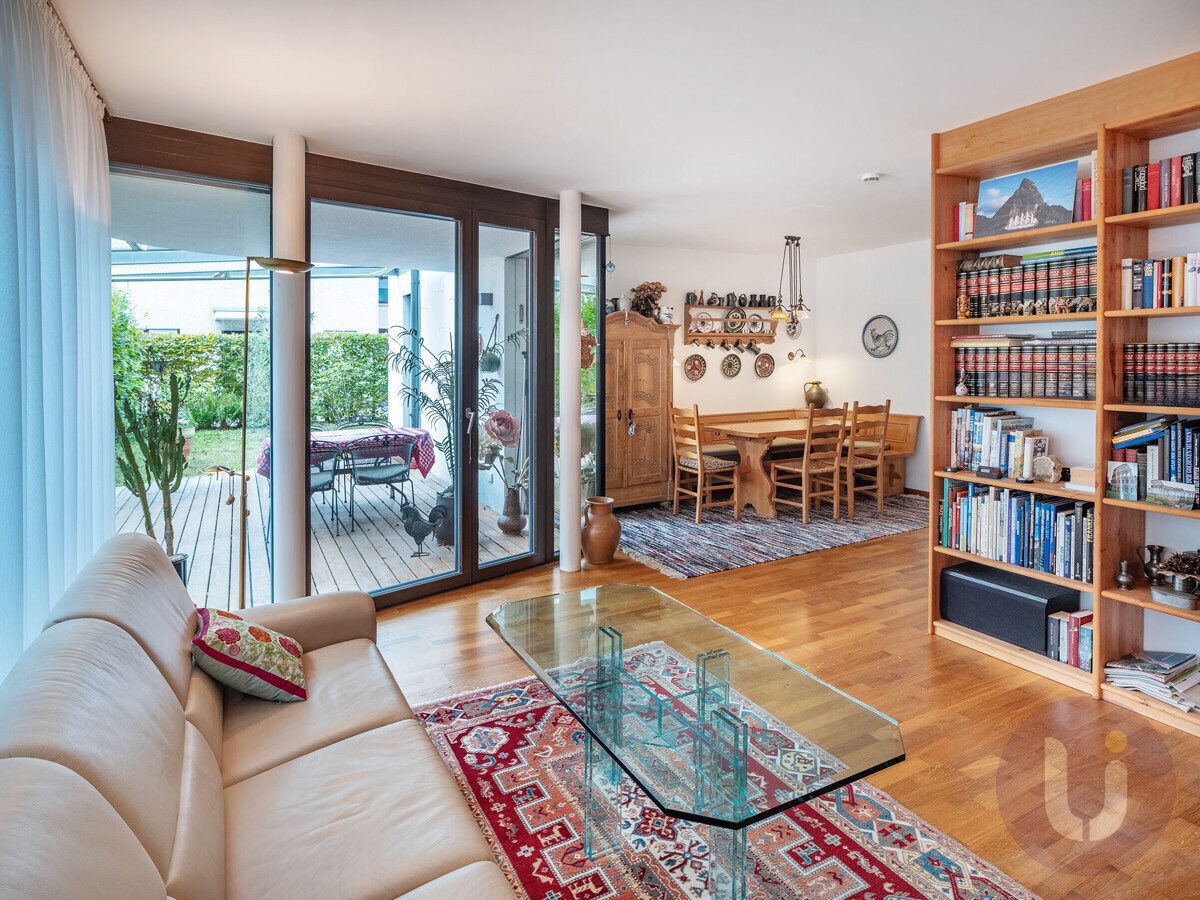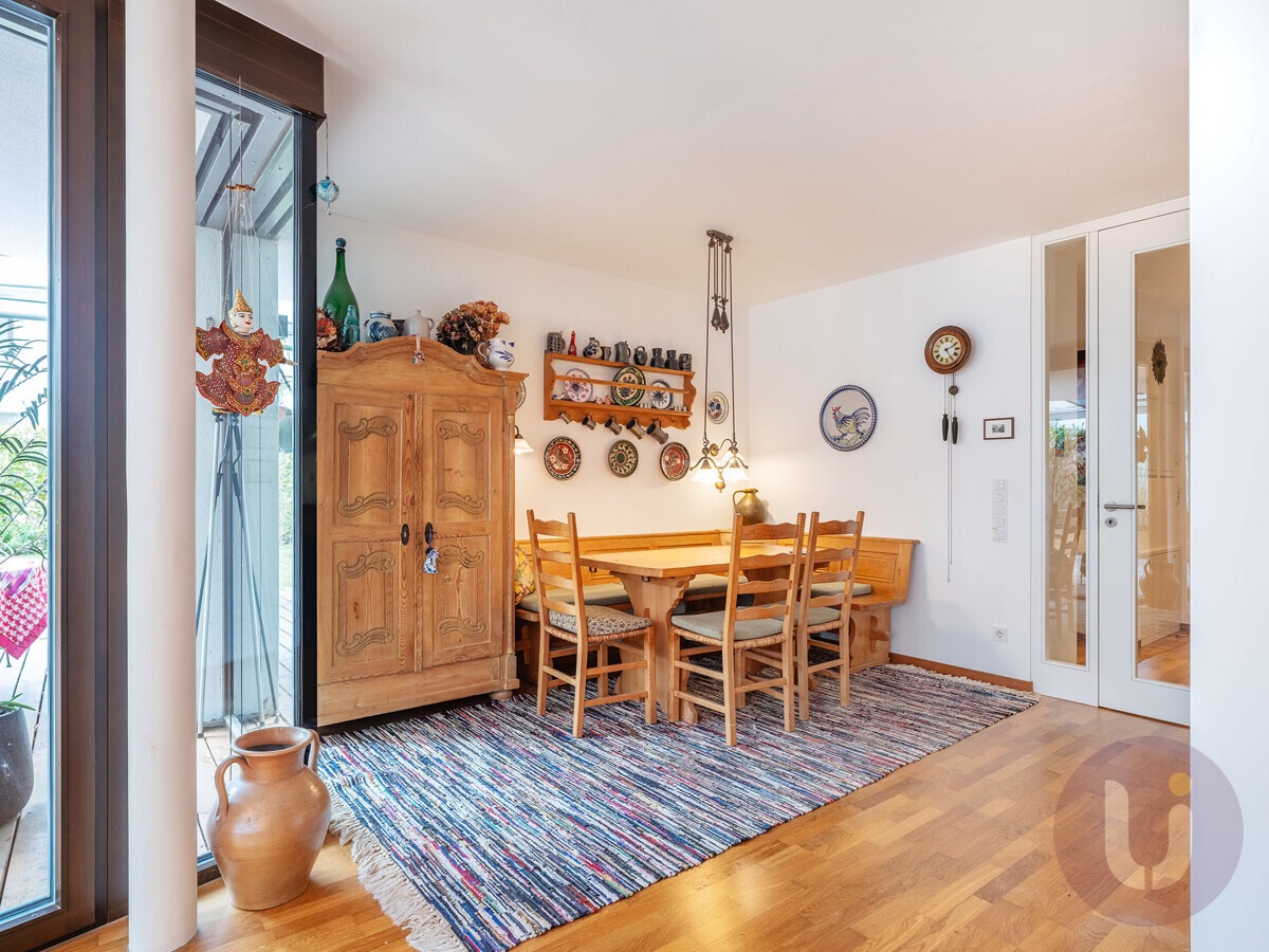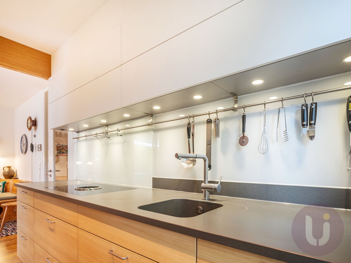 Der großzügige, offene Wohn-Essbereich bildet das Herzstück der Wohnung und geht nahtlos in die individuell angefertigte Schreinerküche über. Hochwertige Marken-Elektrogeräte auf Augenhöhe und das moderne Bora-Ceranfeld mit integriertem Kochfeldabzug machen das Kochen zum Vergnügen. Durch die bodentiefen Fenster und Terrassentüren genießen Sie nicht nur viel Tageslicht, sondern auch den direkten Zugang zum privaten Außenbereich.